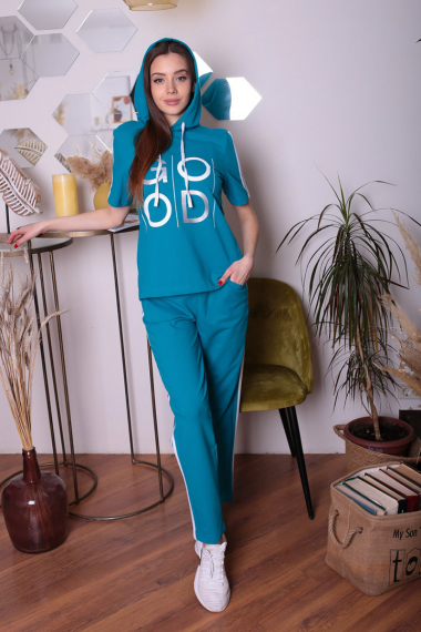 Фото товара 18343, изумрудный спортивный костюм с капюшоном