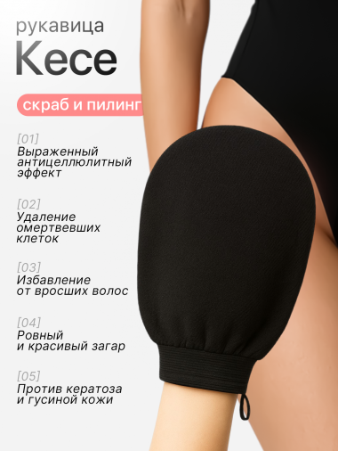 Глубокое очищение и эксфолиация: Кесе обеспечивает механический пилинг, который эффективно удаляет загрязнения и омертвевшие клетки, выравнивая рельеф кожи и делая ее невероятно гладкой на ощупь, уменьшает растяжки и проявления целлюлита.